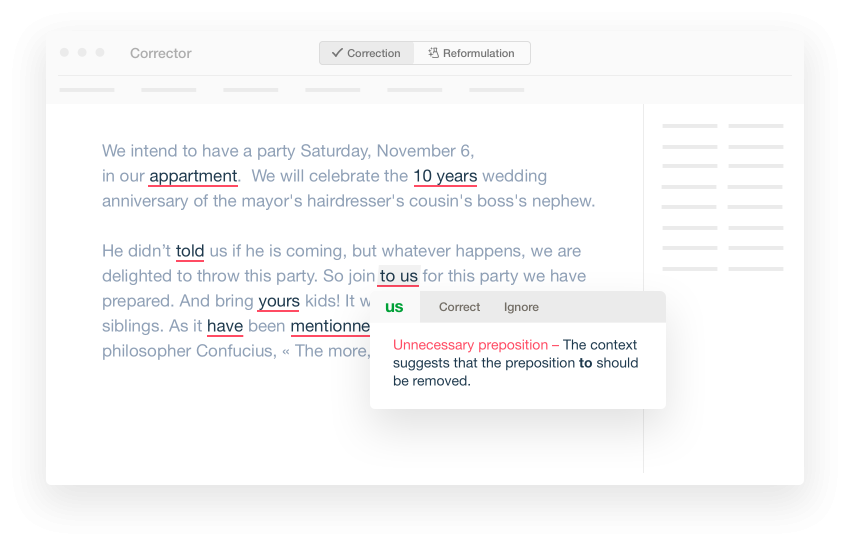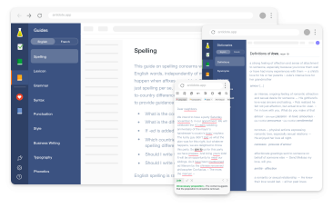 Installs locally on your computer, Windows or Mac. Launch the powerful corrector, comprehensive dictionaries and detailed language guides from your favourite software. Learn more