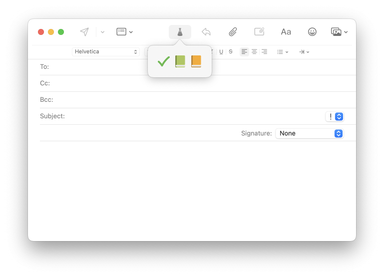 strikethrough). - If there is no selection and the cursor is positioned in the body of the email, Antidote will correct the entire email.