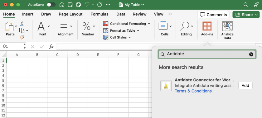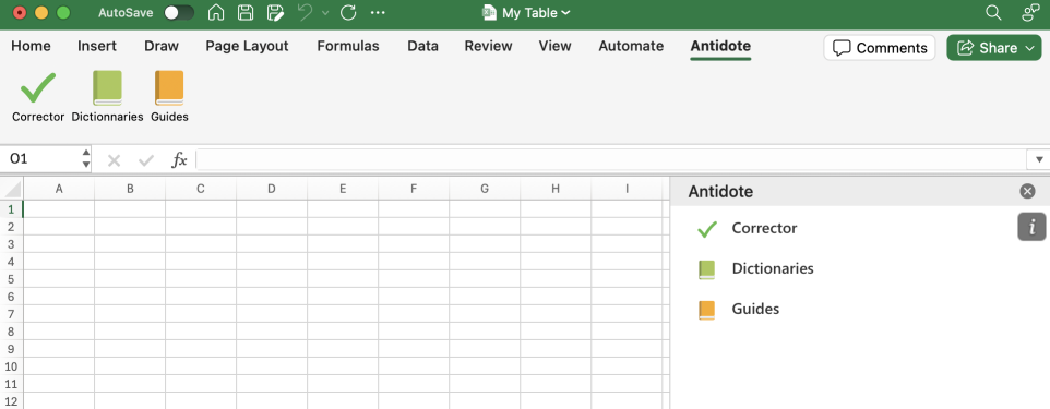 The Antidote Connector works with Excel 2024 or a Microsoft 365 subscription.
