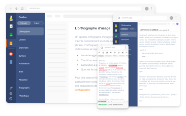 Le logiciel s’installe localement sur votre ordinateur Windows ou Mac. Profitez du meilleur correcteur, de riches dictionnaires et de guides linguistiques détaillés. En savoir plus