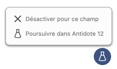- Vous pouvez réactiver la Correction Express à tout moment en sélectionnant l’option Réactiver pour ce champ dans le menu du Connecteur Antidote.