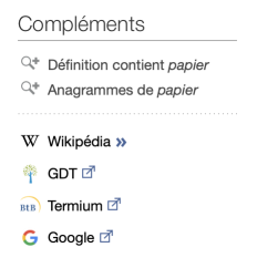 Guide d’utilisation / Dictionnaires / Dictionnaire de définitions / Compléments