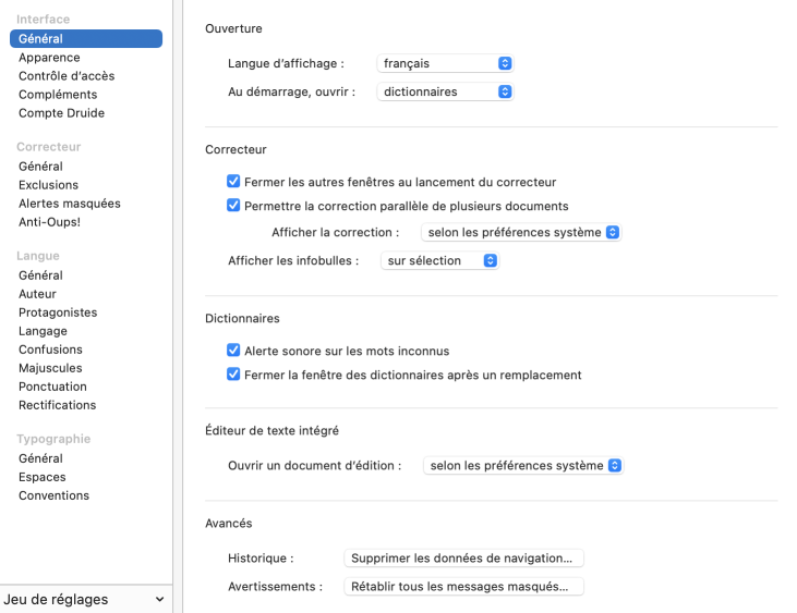 - À l’installation, les nouvelles corrections s’affichent selon les préférences système.